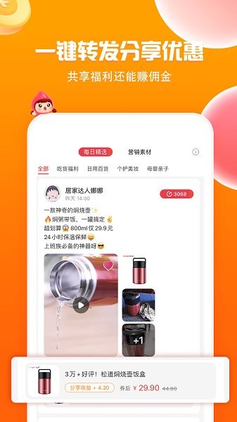 1. 素材圈:跟着选品达人分享热门商品赚佣