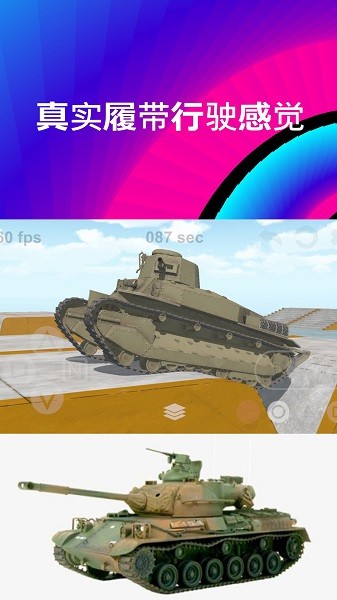 坦克大战模拟器可以实现你开坦克的梦想了,你将见到来自不同国家的不同坦克,你可以自由的驾驶他们越过各种各样的障碍,完成不同的机动动作,操作简单容易上手,所有的履带,悬架和车轮均由物理引擎提供动力。享受悬架和履带的逼真的运动。