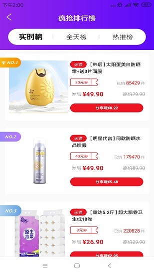 2、所有的商品几乎都能找到优惠券,超多大额优惠券免费领取。