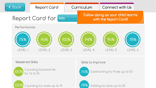包括报告卡部分,家长和老师可以在其中监控每个孩子的进度并了解新的技能培养活动。