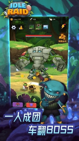放置开荒团(idle raid)集策略冒险与放置挂机于一身,玩家可以选择单机模式进行体验,随时随地登录就能玩,各种关卡模式等你去探索,超强的boss等你来打,只有不断升级自己的技能才能轻松打败对手,休闲的挂机玩法可以让你轻松获得宝藏。