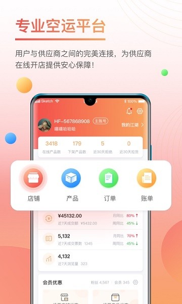 3、专业空运平台,用户与供应商之间的完美连接,为供应商在线开店提供安全保障;