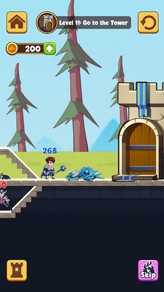 拯救英雄(save the hero)带来趣味的冒险玩法,游戏中玩家将化身为一个勇者,你的任务就是去打败怪兽救出被困的公主,每个关卡场景中的怪物种类以及数量各不相同,难度会逐渐提升,大家在这个过程中记得升级自己的装备,这样实力才会更强哦!