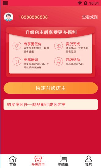 2、在线随时升级成为店主,便于在线管理自己的店铺资源。