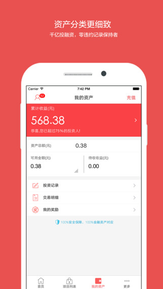 2.安全有保障:金融机构信用背书,机构零违约率;账户托管无资金池。