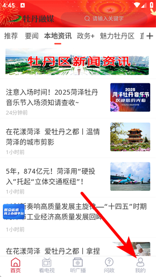1、打开牡丹融媒app,点击底部我的按钮,进入个人的页面。