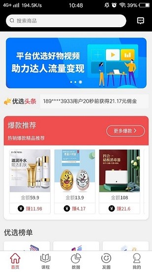 【抖客优选】是短视频带货服务平台,旨在帮助商家推广产品、帮助想通过短视频赚钱的达人只用转发视频就可以带货赚钱。致力于通过有趣的视频销售产品,帮助中小企业解决有产品而推广难、成本高等问题,网红达人有流量无资源变现问题。 【DOU+助力】达人视频热门以后,可申请平台提供的免费DOU+投放。 【数据监控】全方位短视频数据监控,实时订单统计。 【视频带货】开设相关运营课程,无论是初入短视频行业的新人还是已有粉丝的的网红达人,都可以从基础深入,更加系统性的学习如何运营自己的短视频账号,最终实现盈利的目的。