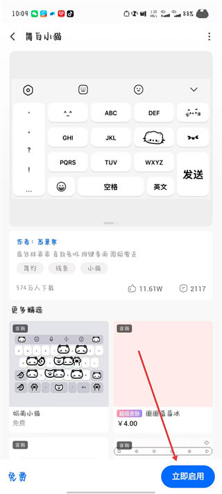 4、在皮肤详情页面,点击立即启用,即可使用该模板。