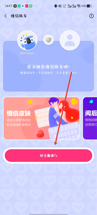 4、在情侣账号页面点击快去邀请Ta按钮。