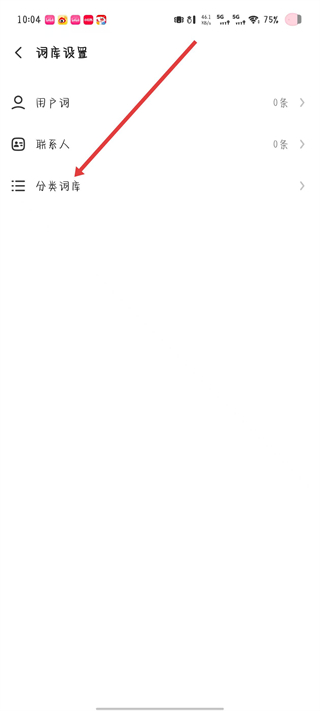 3、在词库设置页面,选择分类词库选项,进入词库列表页面。
