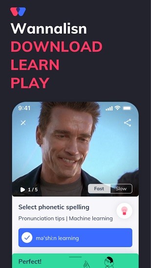 Wannalisn 是一款免费的英语学习应用程序,可帮助您通过听力活动和流行电影、连续剧和歌曲中的迷你视频片段来训练您的听力和发音技巧。