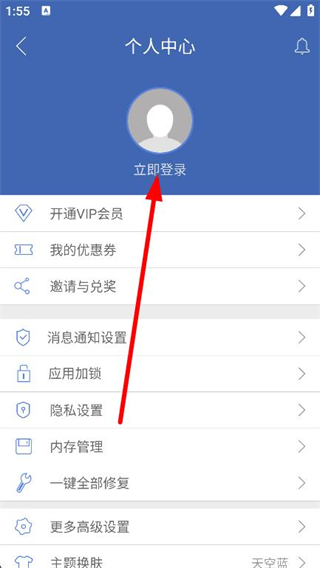 2、进入个人中心页面,找到并点击上方立即登录选项。