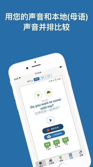 在跟读原音练习之后,就可以给自己录音