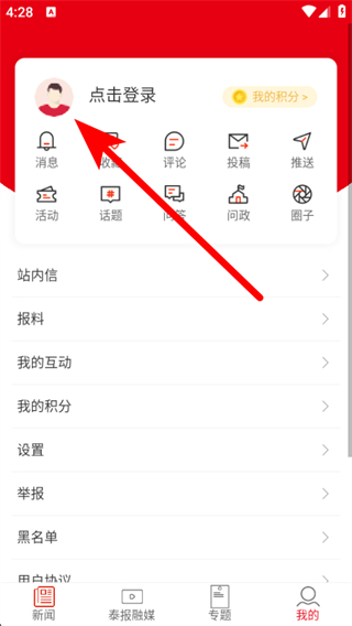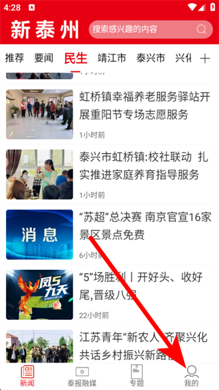 1、打开新泰州APP,点击底部导航栏的我的,进入个人的页面。