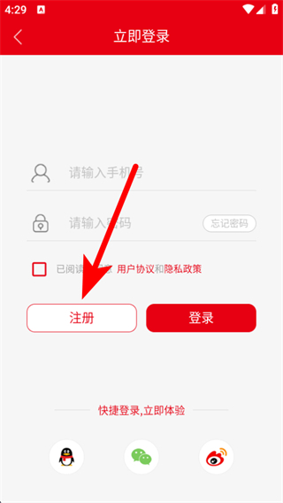 3、在立即登录的界面,点击注册的按钮,进入用户注册的页面。