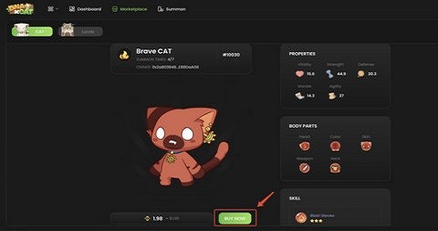dnaxcat(以下简称九藏猫),是yooshi平台支持的第一款链游,拥有更加安全的游戏环境,精致的画面,还有大量活跃的玩家在线。九藏猫链游的开局所有的猫咪玩家们需要进行购买,根据他们的属性来进行搭配,每天的任务的任务获取收入。