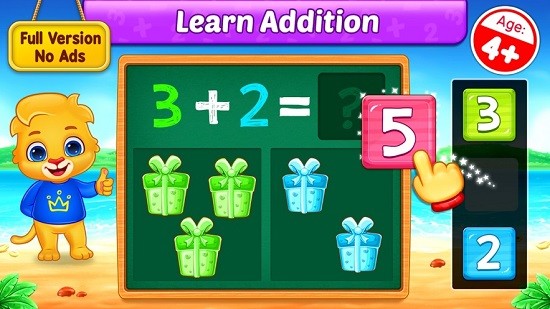 math kidsapp安卓版支持在手机上通过玩各种数学小游戏来学习简单的数学知识,游戏的内容丰富,主要包含了数字的认知,简单的加减法等,有非常精美的卡通配图,深受儿童喜欢,喜爱的朋友赶快下载体验吧!
