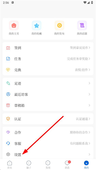 2、在我的页面中,下滑找到并点击设置选项,进入设置界面。