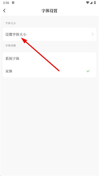 4、在字体设置页面,点击设置字体大小选项,进入字体大小调整页面。