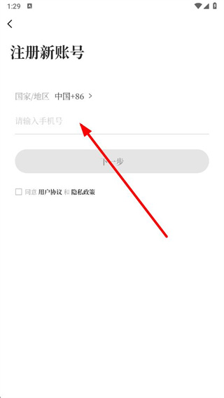 4、在页面,输入手机号,勾选同意用户协议和隐私政策后,按照提示完成后续操作,即可完成注册。