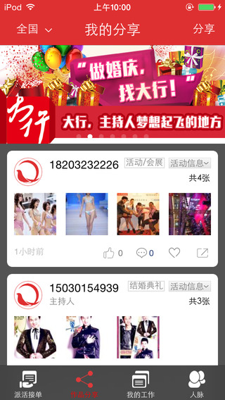 资源撮合:帮助婚庆内人员进行资源对接,解决圈内“派活接单”痛点,提高工作效率;