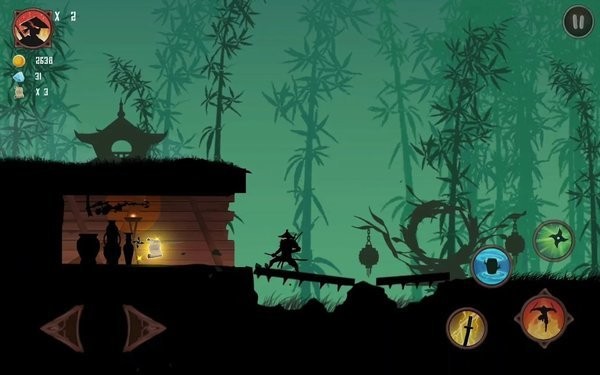2、剪影式画风和爽快的杀敌感,体验忍者的墨色江湖。