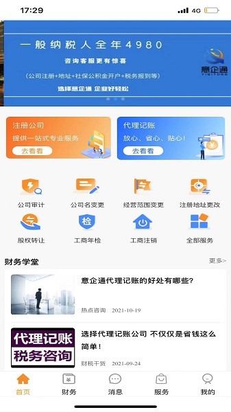 意企通APP致力于为中小微企业提供“从公司注册到上市”全生命周期服务的互联网科技服务型APP。主要从事代理记账、工商代理、财税服务、高新企业认证等专业高效的一体化综合财税及企业服务。