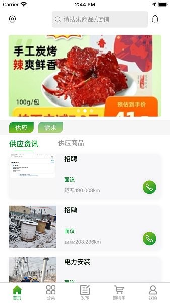 例如:农副产品、五金工具、日用百货、机械租赁、劳务派遣,等信息浏览和交易的互通助手!