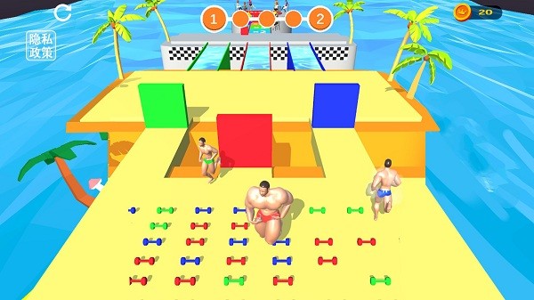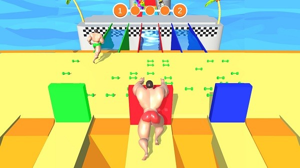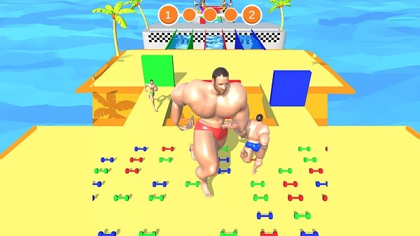 3、自由的跑酷,你得灵活走位,去快速的把相同颜色的哑铃收集起来,有比对手强的力量。