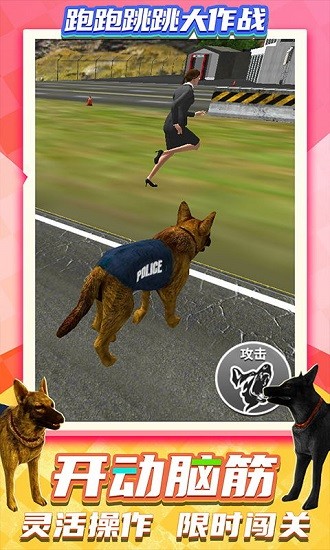 跑跑跳跳大作战游戏中你将化身为一名警察,利用你手中的武器、警犬以及你不凡的身手来抓捕罪犯,犯罪分子可是非常狡猾的,你做任务的场景包括机场、大街上等,更多场景等你来解锁,守护人命安全,欢迎对此游戏感兴趣的朋友下载体验!