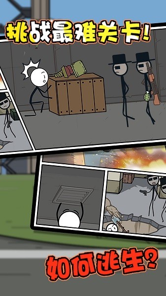 火柴人题材的冒险游戏,采用了大逃亡的玩法,在这里设计了各种趣味小关卡,故事对话也都很恶搞魔性,玩家需要转移狱警的注意来获取逃脱的机会,寻找最佳路线来提升成功率。