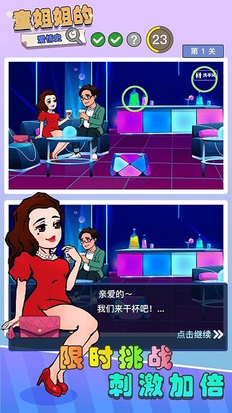 童姐姐的爱情史,趣味的找茬手游,游戏中玩家需要找到画面中所有的不同点,游戏中所有关卡的图形均只有微小的区别,玩家需要充分仔细的对比两张图片,找出所有不同点,喜欢找茬游戏的玩家可以下载体验一下!