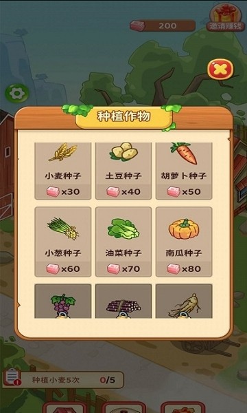4、所有食物的种子都在商城,玩家前期可以免费领取,后期需要用金币去买