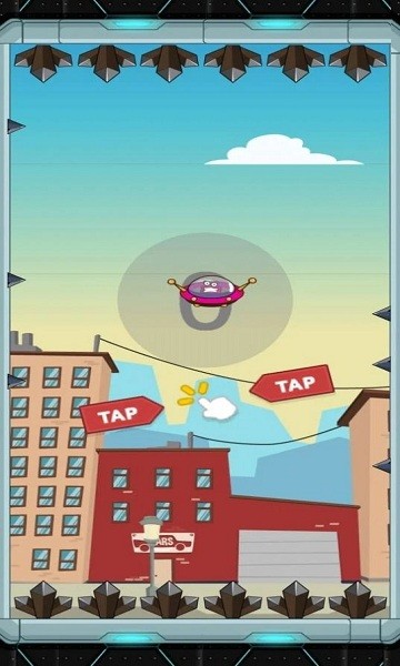 1、玩家通过不断的点击屏幕控制飞碟飞行的高度,在飞行过程中,一定要小心沿途的尖刺。