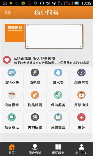 足不出户就可以缴水电燃气费(抄水表再也不用本儿记录,物业通过手机管理端直接上传数据)。