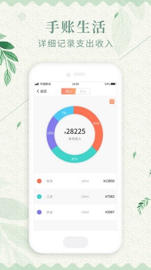 每笔收入支出都有迹可循,每月生成图形,一目了然。