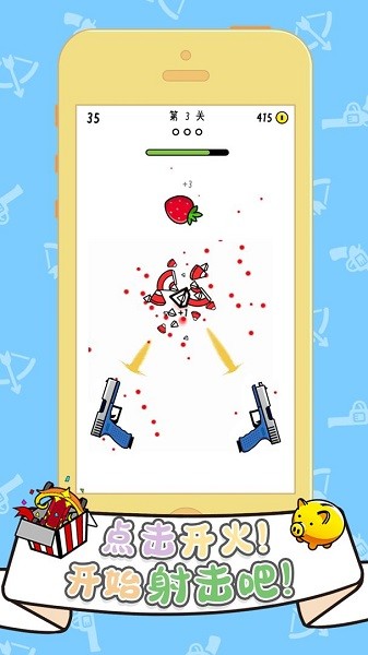 双枪王者手游是全新上线推出的有关射击类的休闲小游戏,画质画面清新简单,唯美可爱,提供各种水果物品可以随你射击,操作起来也十分简单,成功通关还有特殊奖励物品可以领取,更支持在线抽奖,大量关卡等你挑战!