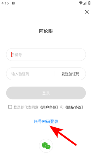 3、在登录的界面,点击账号密码登录,进入账号密码登录页面。