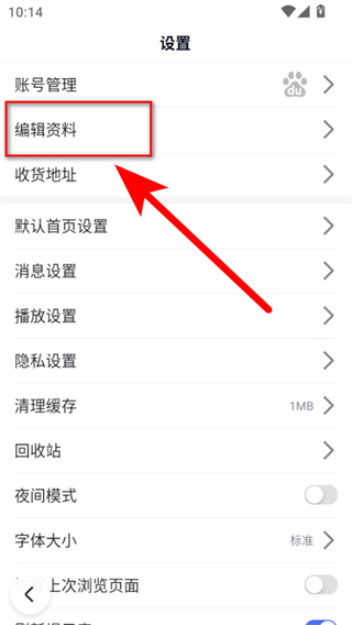 3、在设置页面中,找到并点击编辑资料选项,进入编辑个人资料页面。