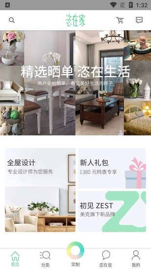 恣在家是一款手机家居购物平台,在恣在家上面,你可以买到喜欢的各种家居,平台还有专门的设计师,你可以提供家里的布局图,设计师会为你推荐一些不错的装饰风格哦,如果感觉不错的话欢迎来本站下载恣在家!