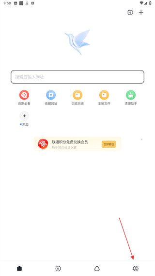 1、打开迅雷应用,点击底部导航栏的我的选项,进入个人中心页面。