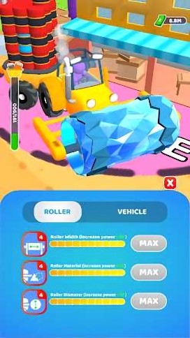 3、使用压路机建造城市,操作简单易上手,拖动以控制压路机,越过碎片和墙壁以压平它们