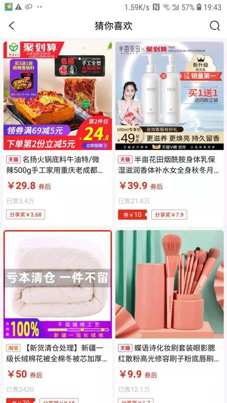 2.汇集海量优质的商品,商品种类非常的齐全,还有大量的优惠券可以领取;