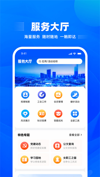 应用场景:工会要闻、通知公告、办事指南、工会圈等