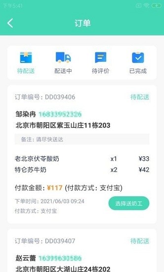 2,奶站每天的订单数量和收入等多种数据都可以一键查看。