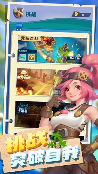 浮岛大决战手机版是采用卡通q萌的画风画面打造设计的策略对战游戏,在游戏中,玩家可以探索未知航线,挑战突破自我,还可以建造塔防,解锁攻防图纸设计,策略布阵,发展科技,升级武器,与敌人作战,战斗火力全开!