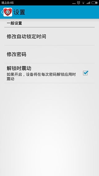 2.解锁时震动提醒,不使用时设定时间自动锁定