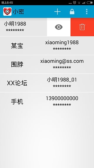 小密轻松帮助用户记录各种账号与密码,用户不用再重新申请账号,不用找回密码。简单操作就可以记录账号。