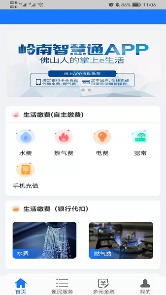 “岭南智慧通”APP实现佛山市民在线缴纳水费、燃气费和理财等实用功能,为佛山市民的日常生活提供更多的便民服务。