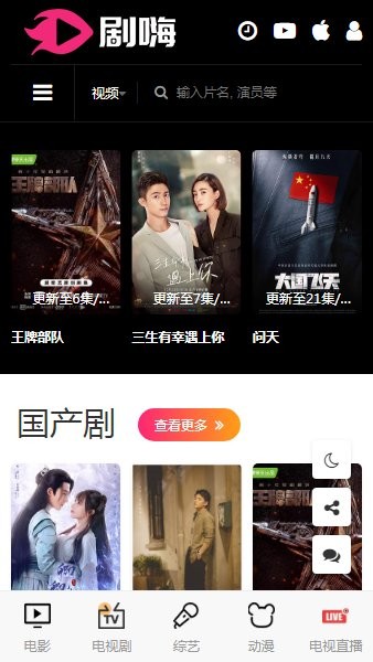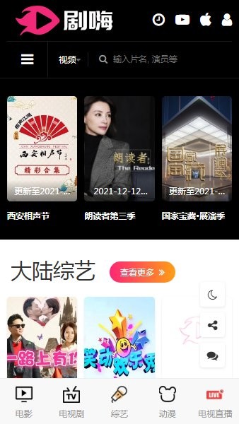 剧嗨影视是很受大家喜欢的追剧app,它为广大用户带来丰富的资源,界面根据视频类型划分了多个版块,便于大家快速筛选查找,除了网上热播的综艺影视之外,还能支持在线观看电视直播,央视和地方卫视都能搜索到,相当于随身小电视。
